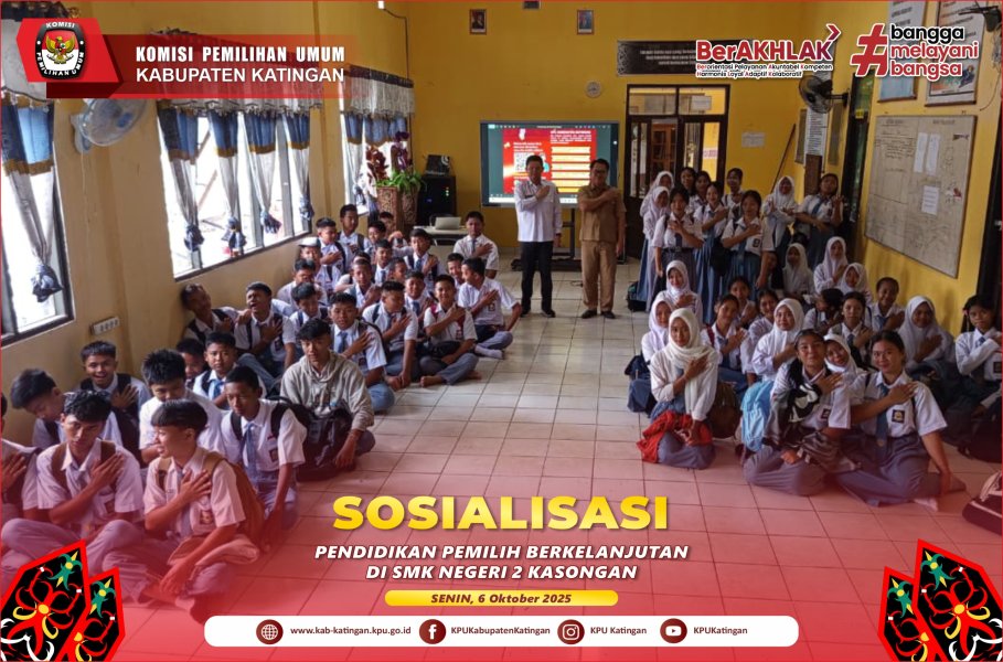 #TemanPemilih, KPU Kabupaten Katingan melaksanakan kegiatan sosialisasi pendidikan pemilih berkelanjutan di SMK Negeri 2 Kasongan pada Senin, 6 Oktober 2025. Kegiatan ini bertujuan untuk meningkatkan pengetahuan dan kesadaran para pelajar tentang pentingnya partisipasi aktif dalam pemilu demi tercapainya pemilihan yang berkualitas dan berintegritas.
