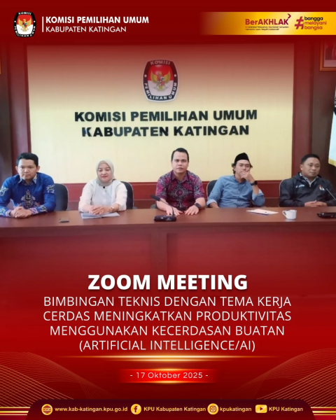 #TemanPemilih, Ketua dan Anggota KPU Kabupaten Katingan mengikuti Bimbingan Teknis dengan tema Kerja Cerdas Meningkatkan Produktivitas Menggunakan Kecerdasan Buatan (Artificial Intelligence/AI) via Zoom Meeting. Jum'at, 17 Oktober 2025.