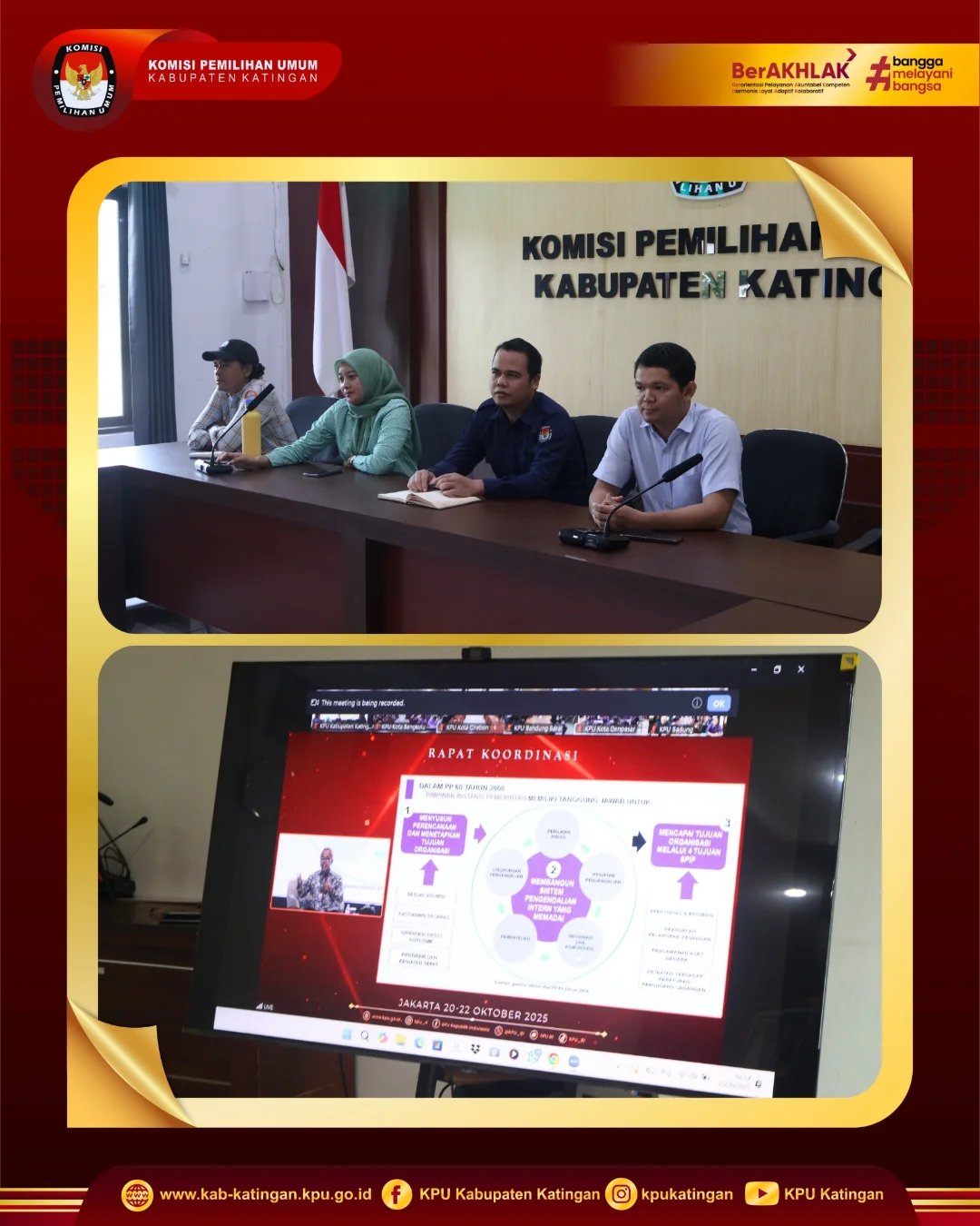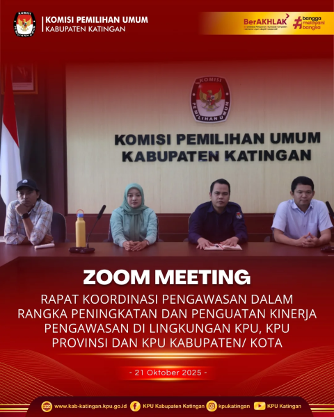 #TemanPemilih, Ketua dan Anggota KPU Kabupaten Katingan mengikuti rapat Koordinasi Pengawas Dalam Rangka Peningkatan dan Penguatan Kinerja Pengawasan di Lingkungan KPU, KPUProvinsi dan KPU Kabupaten/Kota via Zoom Meeting. Selasa, 21 Oktober 2025.
