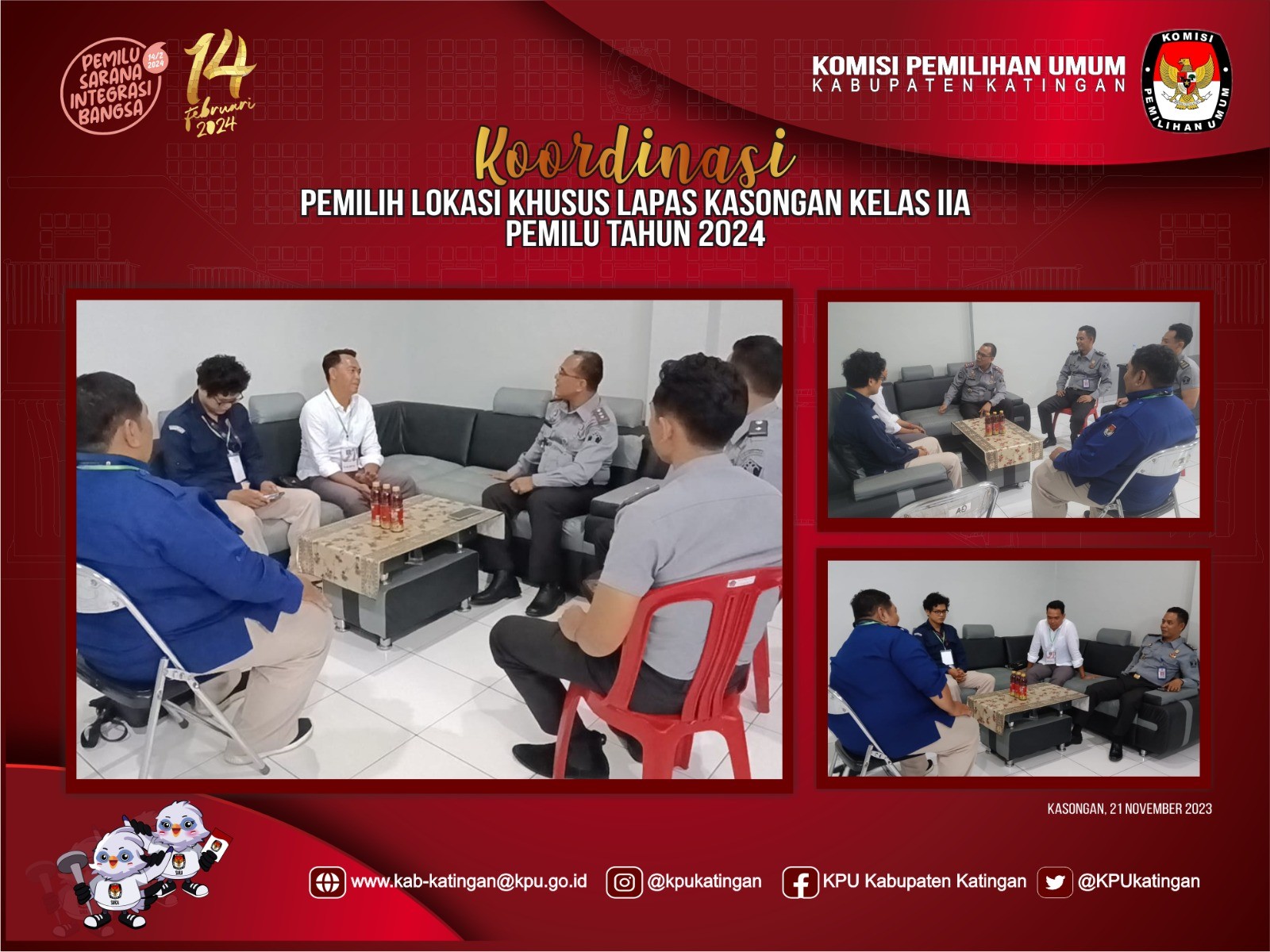 #TemanPemilih, Demi Memastikan dan Menunjang agar suksesnya Pemilu Tahun 2024, Anggota KPU Kabupaten Katingan Habibi Mubarak dan sekretariat melaksanakan koordinasi ke Kepala Lapas Narkotika Kelas IIA Kasongan, terkait pemilih dan TPS Lokasi Khusus untuk Pemilu 2024, Selasa (21/11/2023)