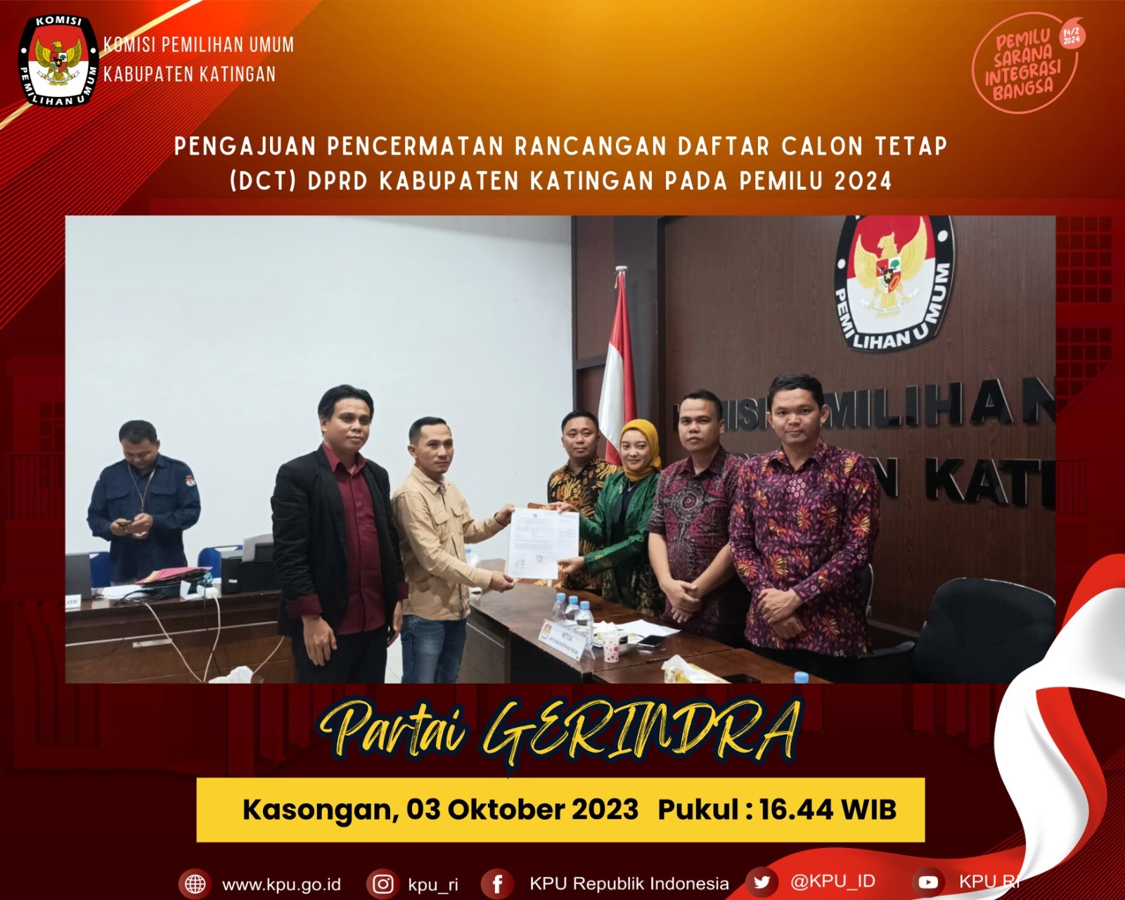 Penerima Pengajuan Pencermatan DCT dari 16 Partai Politik yang ada di Kabupaten Katingan yaitu :