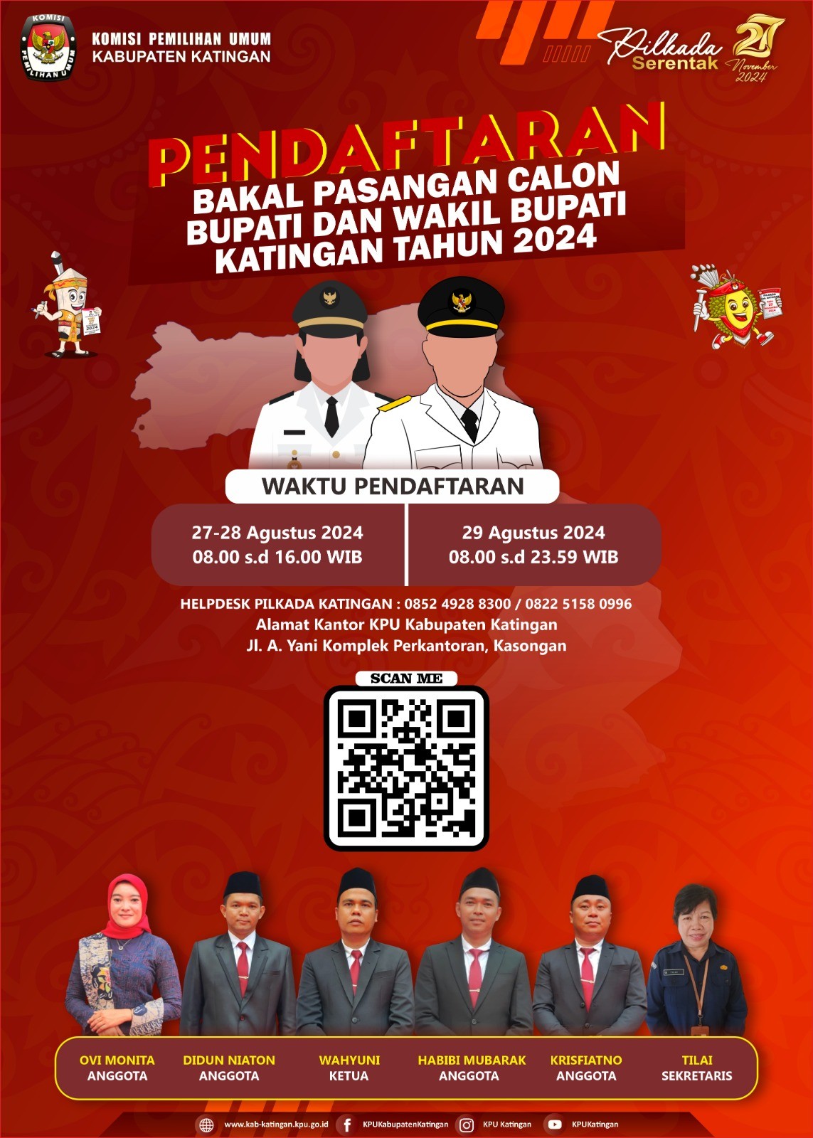 Berikut kami sampaikan Pengumuman Pendaftaran Bakal Calon Bupati dan Wakil Bupati Katingan Tahun 2024