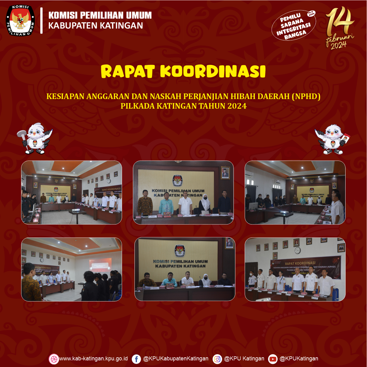 RAPAT KOORDINASI KESIAPAN NASKAH PERJANJIAN HIB AH DAERAH (NPHD) PILKADA KATINGAN 2024