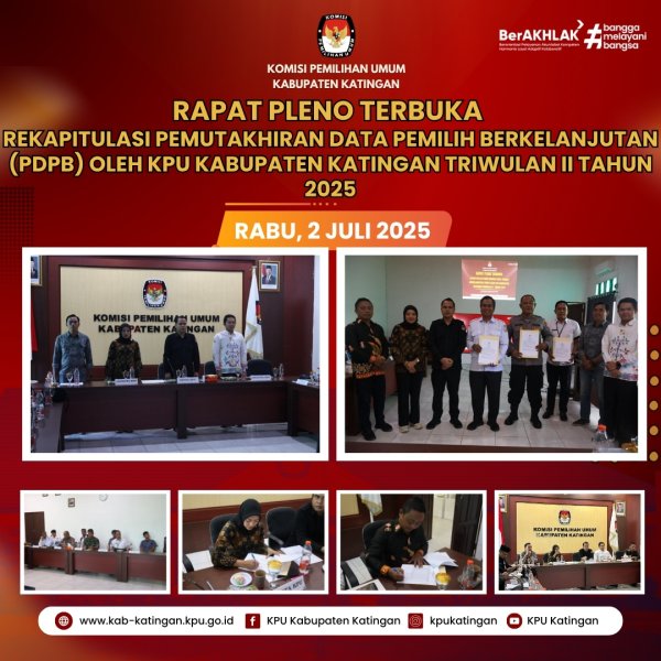 #TemanPemilih, Rapat Pleno Terbuka Pemutakhiran Data Pemilih Berkelanjutan (PDPB) Oleh KPU Kabupaten Katingan Triwulan II Tahun 2025. Rabu, 2 Juli 2025.