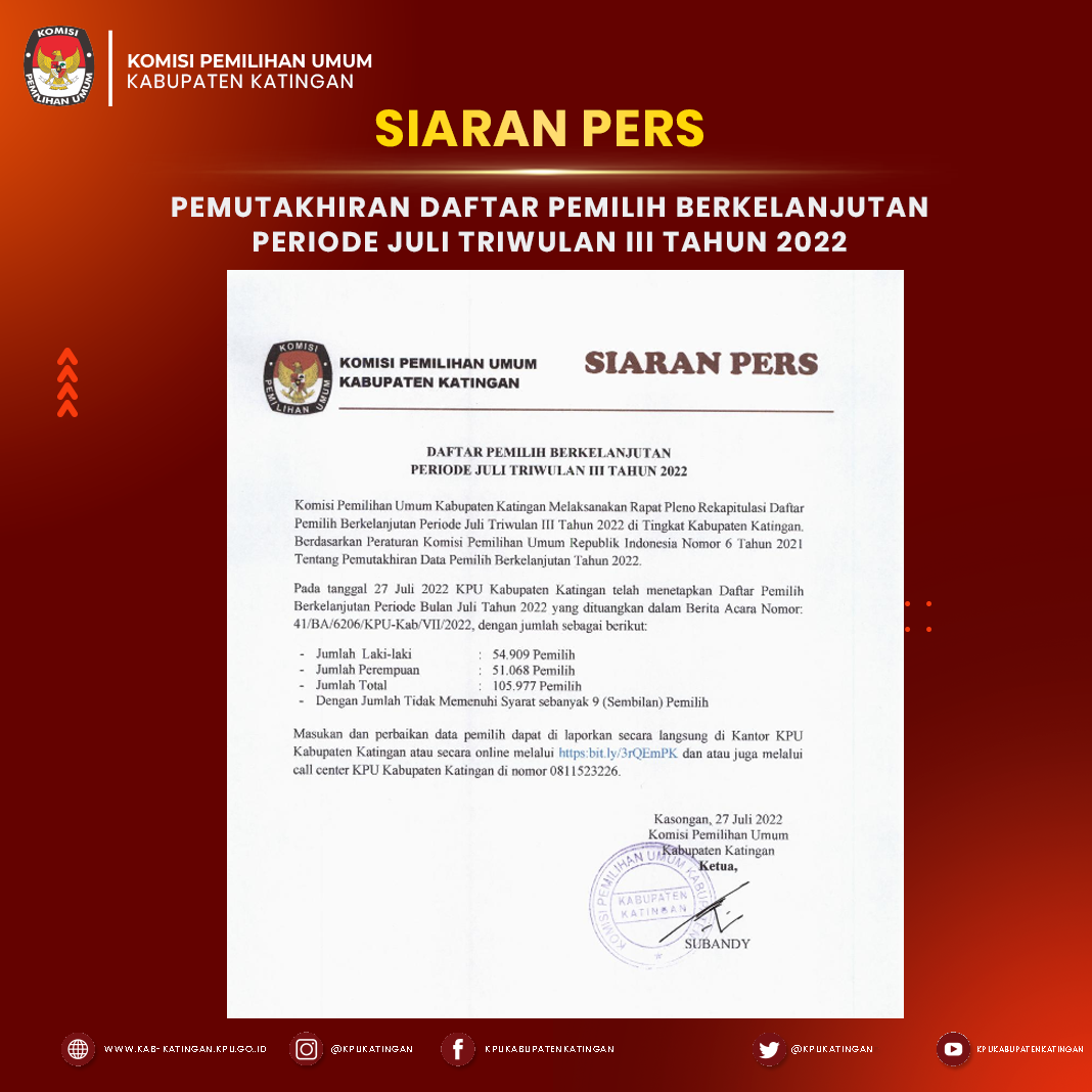 1. Siaran Pers tentang Pemutakhiran Daftar Pemilih Berkelanjutan Periode Bulan Juli Tahun 2022